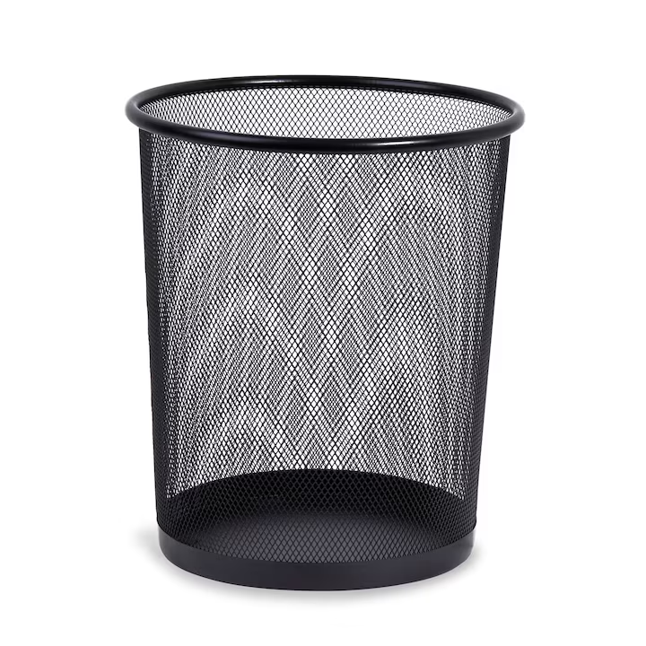 Cos gunoi metalic pentru birou, plasa mesh, 12L, Negru