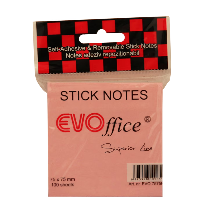 Notes autoadeziv 75x75 mm, 100 file EVOffice Superior Line