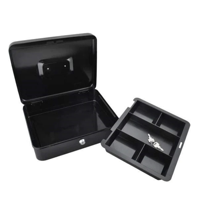 Caseta metalica pentru bani EVOffice, incuietoare + 2 chei, 30x24 cm, neagra