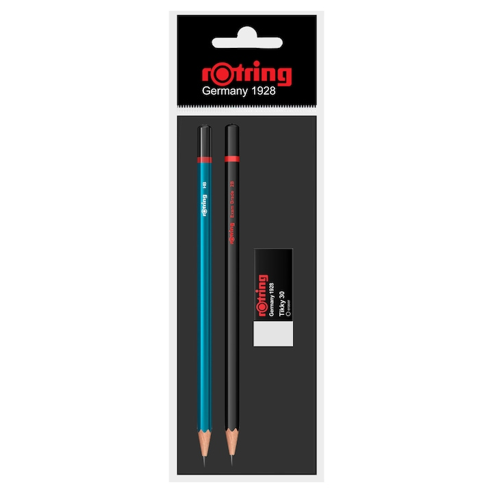 Set Rotring 2 creioane lemn HB+2B + radiera Tikky