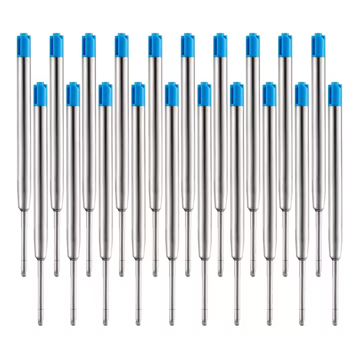 Set 20 bucati Rezerva, Mina pix tip parker metal, 1 mm, rezerve reinlocuibile, Mina pix metalica, Stilou scolar, 9.9cm, 20 x Albastru