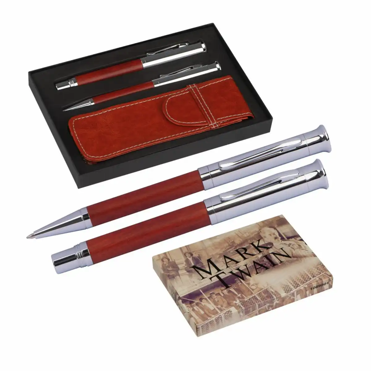 Set de scris Mark Twain, format dintr-un roller si un pix din metal cu finisaj albastru inchis (mina albastra).