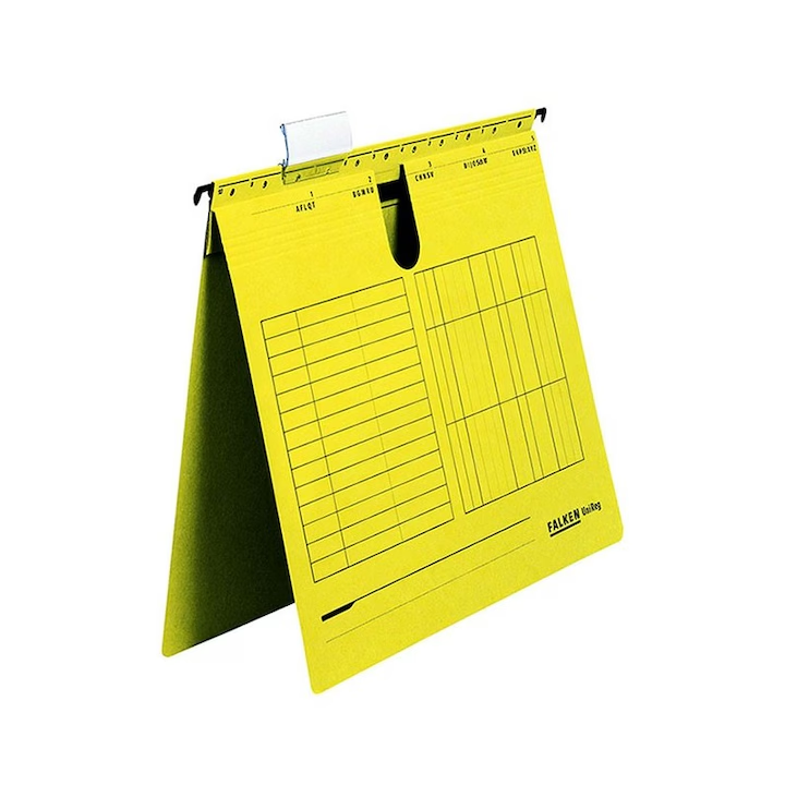Dosar suspendabil Falken, cu sina, A4, 230g/mp, carton, galben