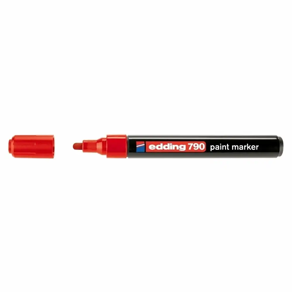 Descopera markerul de vopsea edding 790 in culoarea rosie, creat pentru a oferi marcaje opace si permanente pe diverse suprafete. Acest marker este ideal pentru suprafete intunecate, transparente si netede precum sticla, metalul si plasticul. Cu un varf rotund ce ofera o grosime a liniei intre 2-3 mm, markerul asigura o acoperire uniforma si o utilizare precisa.