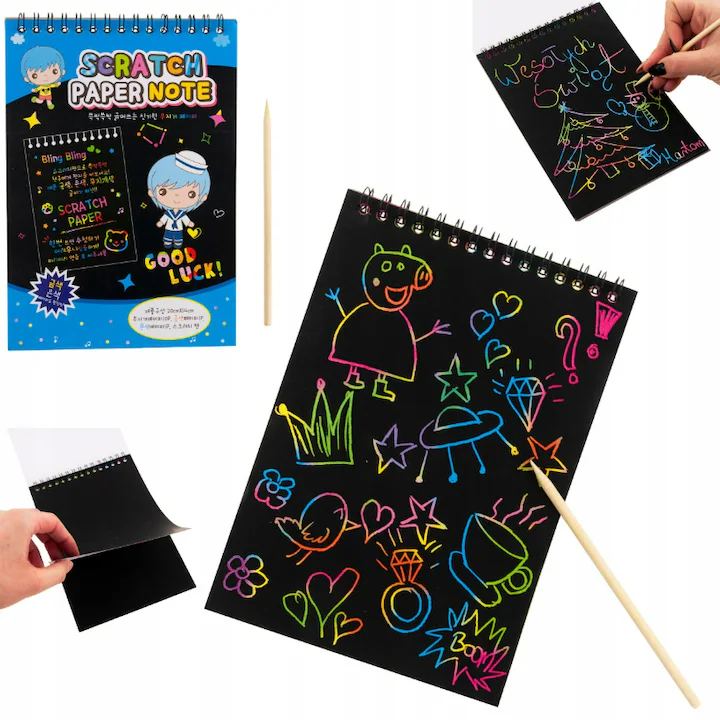 Set 10 planse razuibile, Scratch Paper Note, creion de lemn inclus, albastru